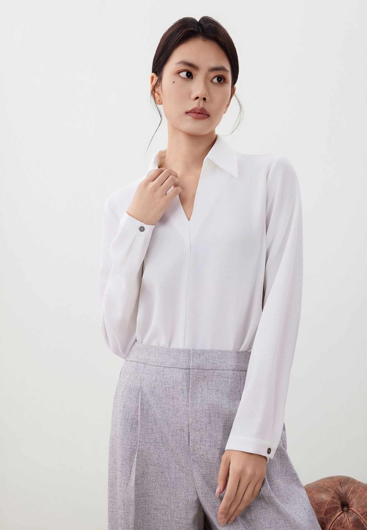 เสื้อเบลาส์แขนยาว สำหรับผู้หญิง Model 5624107101 เหมาะสำหรับคุณผู้หญิงที่กำลังมองหาเสื้อผ้าส่วนบนที่ใส่สบาย แมตซ์กับกางเกงลำลองหรือกางเกงขาสั้นได้ง่ายๆ ไม่ว่าจะเป็นชุดทำงานหรือว่าลุครีแล็กซ์ให้คุณสวมใส่ได้อย่างมั่นใจ พร้อมกับทุกกิจกรรมในแต่ละวัน