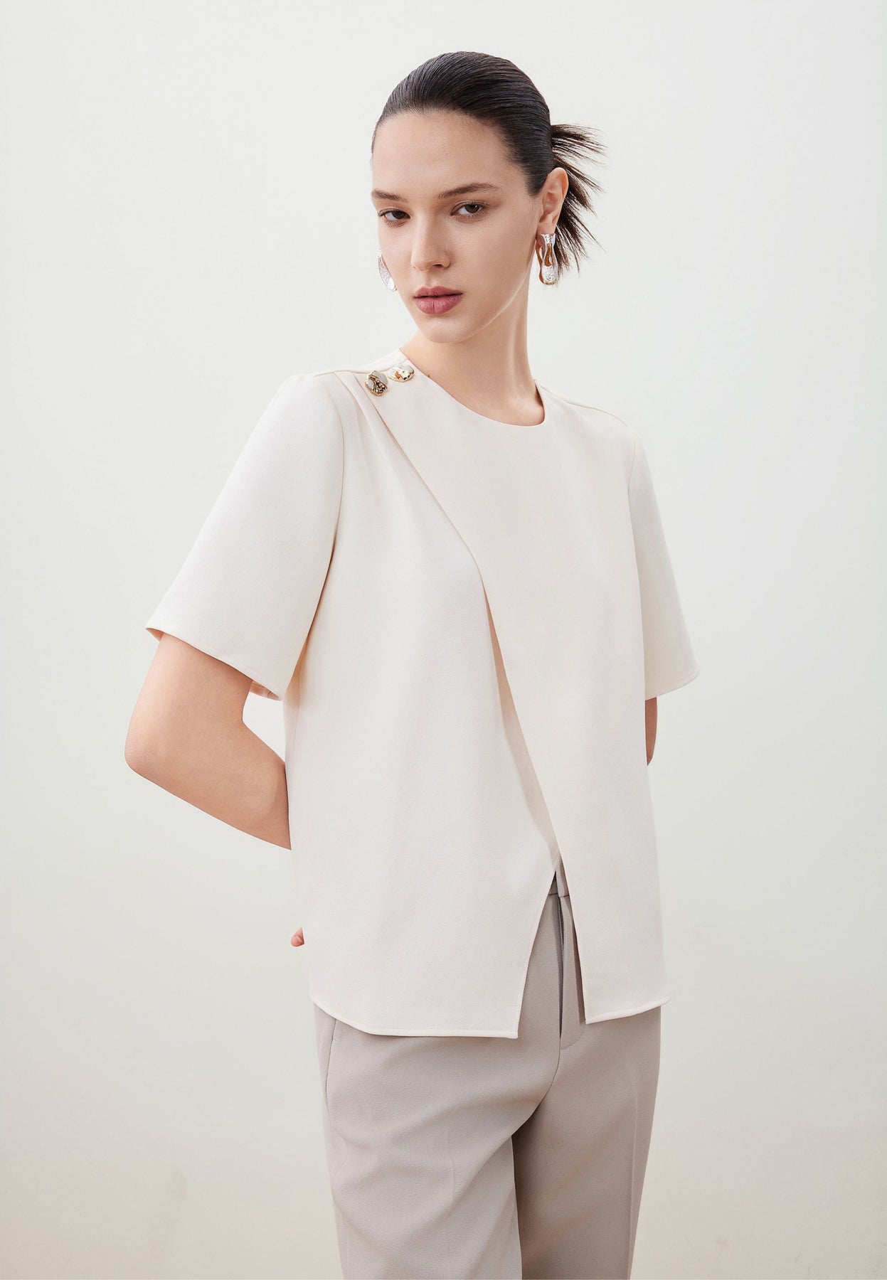 เสื้อเบลาส์แขนสั้น สำหรับผู้หญิง Model 5624142110 เหมาะสำหรับคุณผู้หญิงที่กำลังมองหาเสื้อผ้าส่วนบนที่ใส่สบาย แมตซ์กับกางเกงลำลองหรือกางเกงขาสั้นได้ง่ายๆ ไม่ว่าจะเป็นชุดทำงานหรือว่าลุครีแล็กซ์ให้คุณสวมใส่ได้อย่างมั่นใจ พร้อมกับทุกกิจกรรมในแต่ละวัน