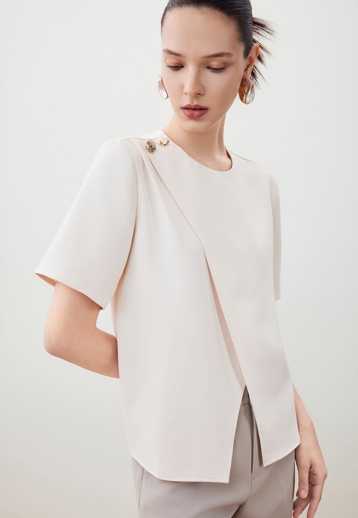 เสื้อเบลาส์แขนสั้นสำหรับผู้หญิง Regular Fit