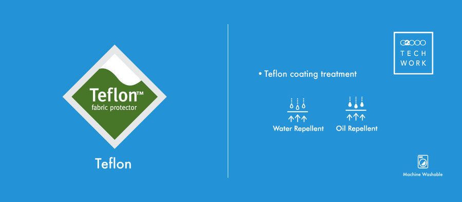 - เคลือบด้วยเทคโนโลยีเทฟล่อน (Teflon) ที่ช่วยป้องกันคราบสิ่งสกปรกหรือคราบฝังลึกให้กับเนื้อผ้าได้เป็นอย่างดี