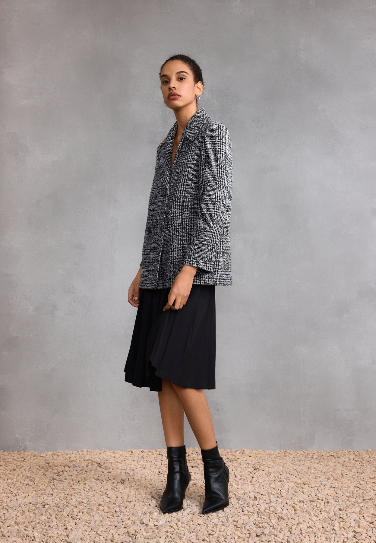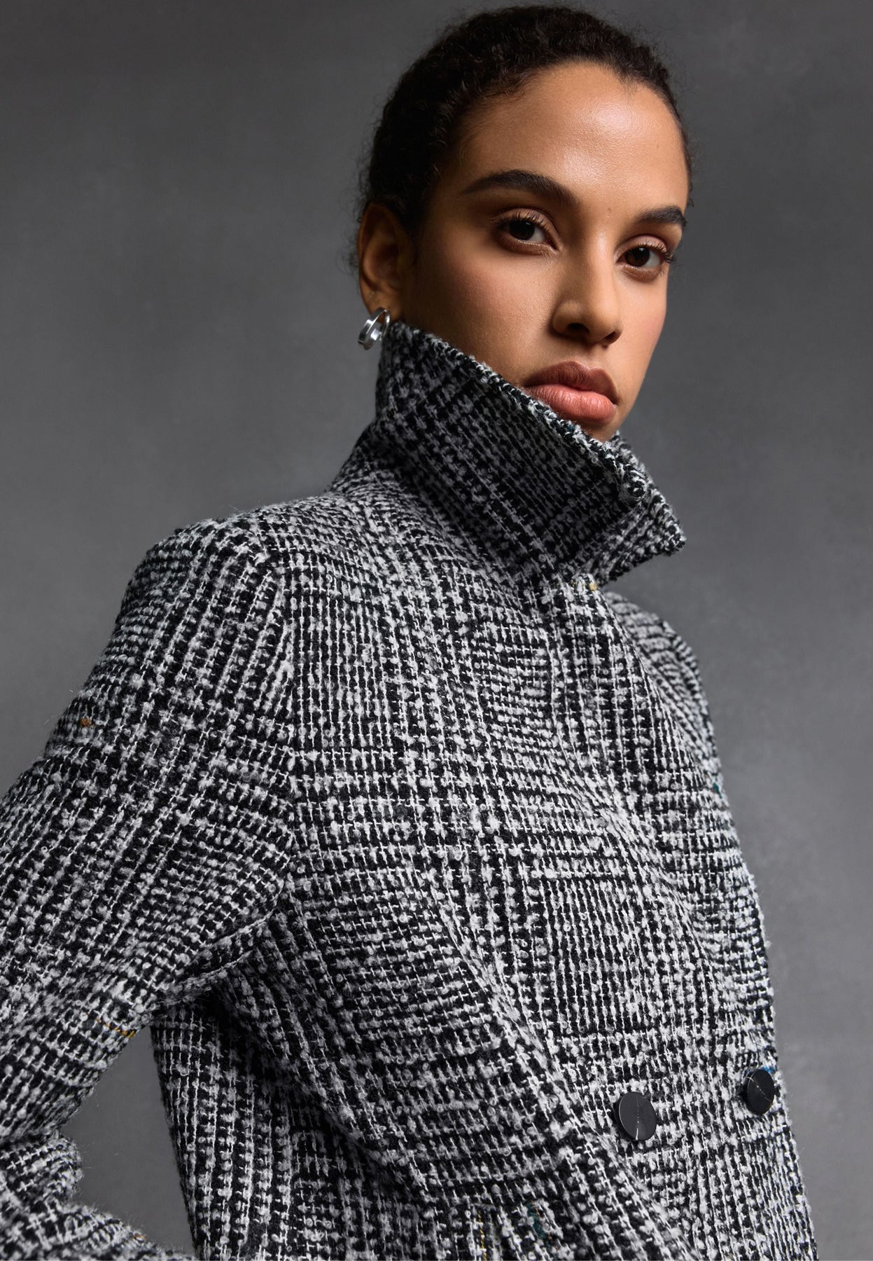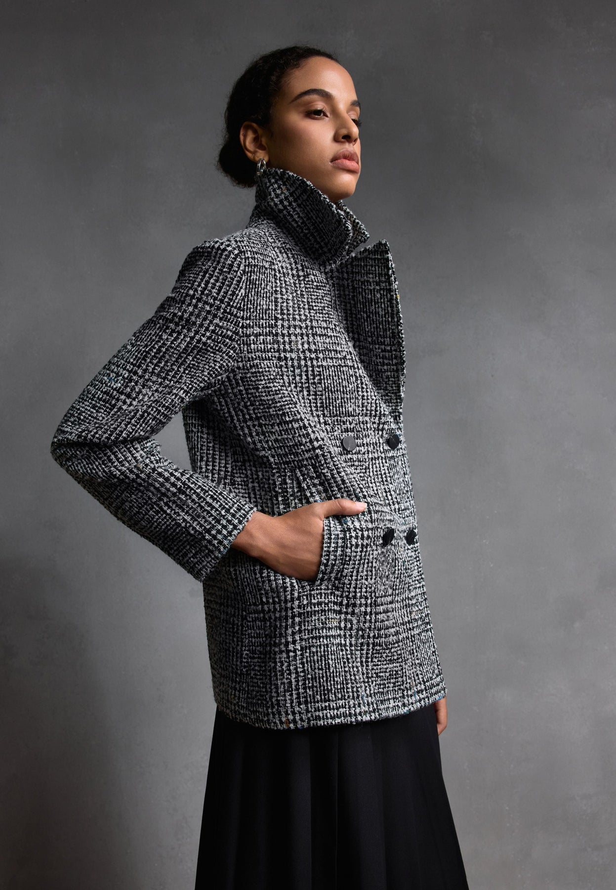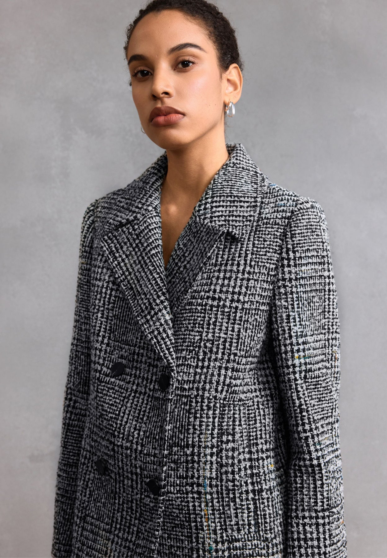 Women Clothing Double-Breasted Checkered Peacoat No fit