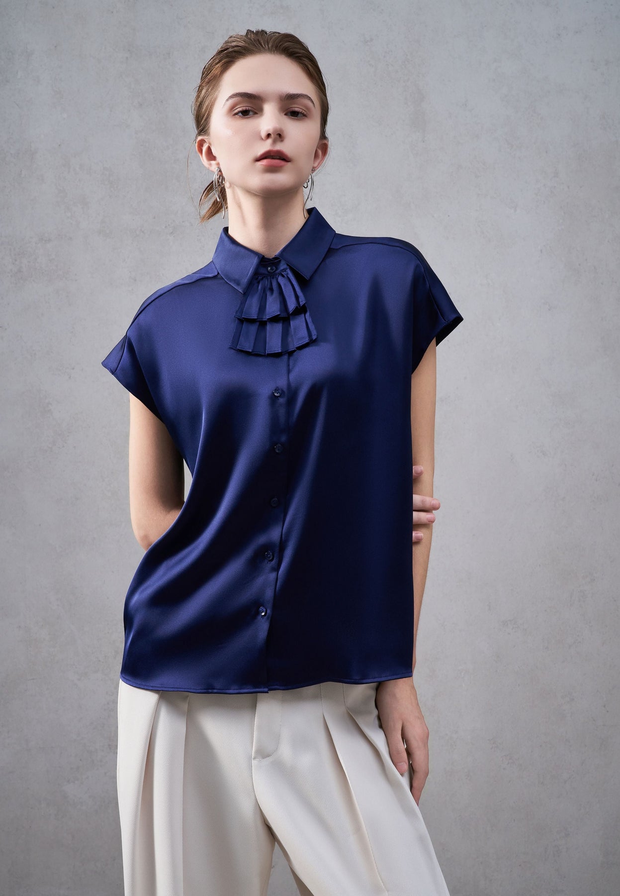 Women Clothing Poly Satin Blouse with Detachable Ruffle Regular Fit
