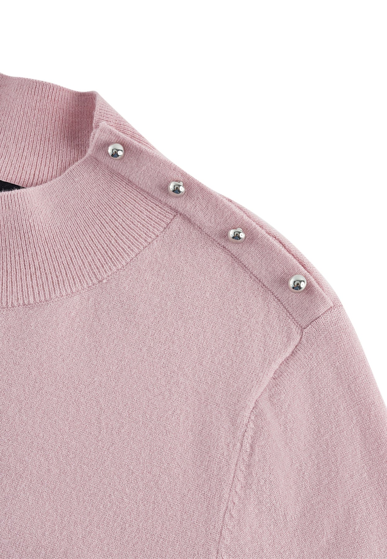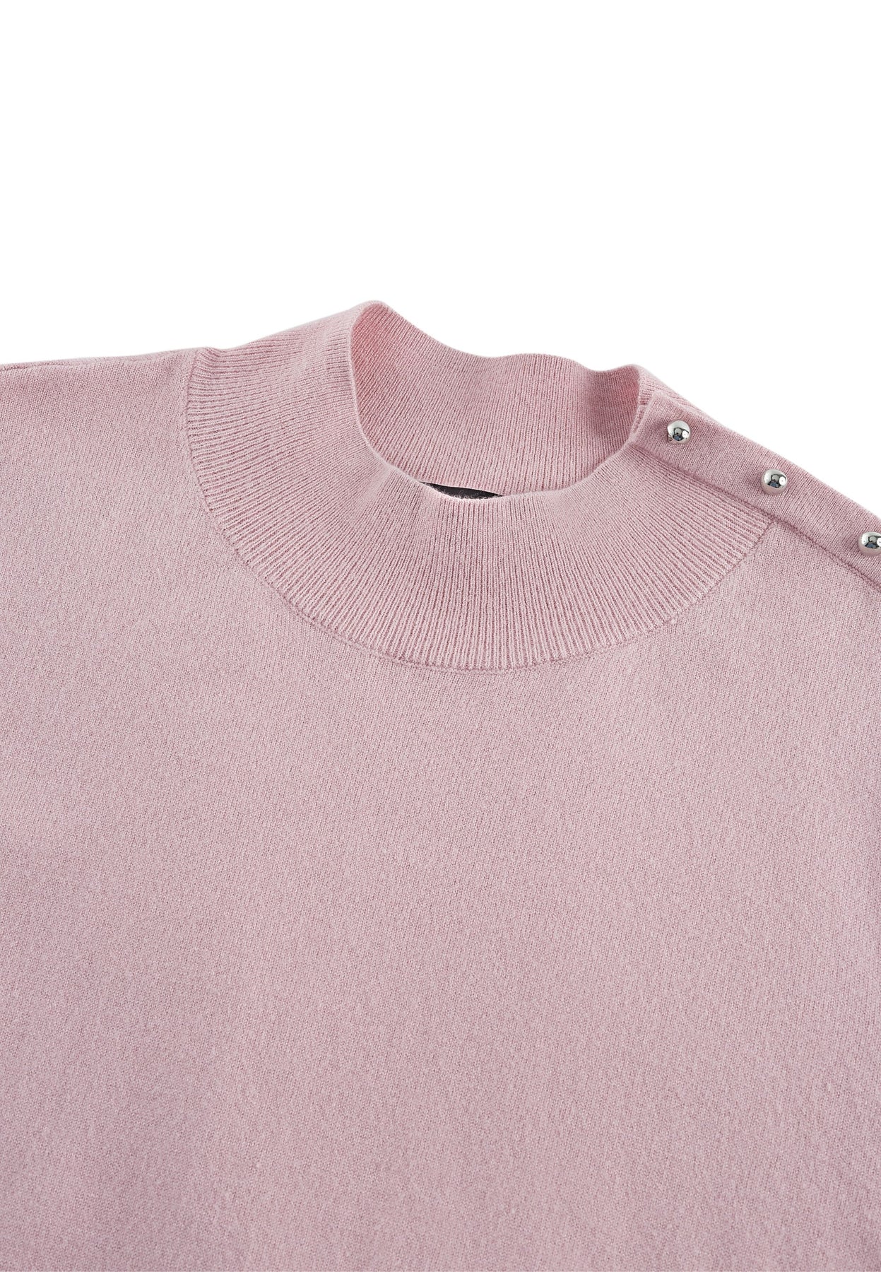 Women Clothing Shoulder Button Mock Neck Sweater Regular Fit