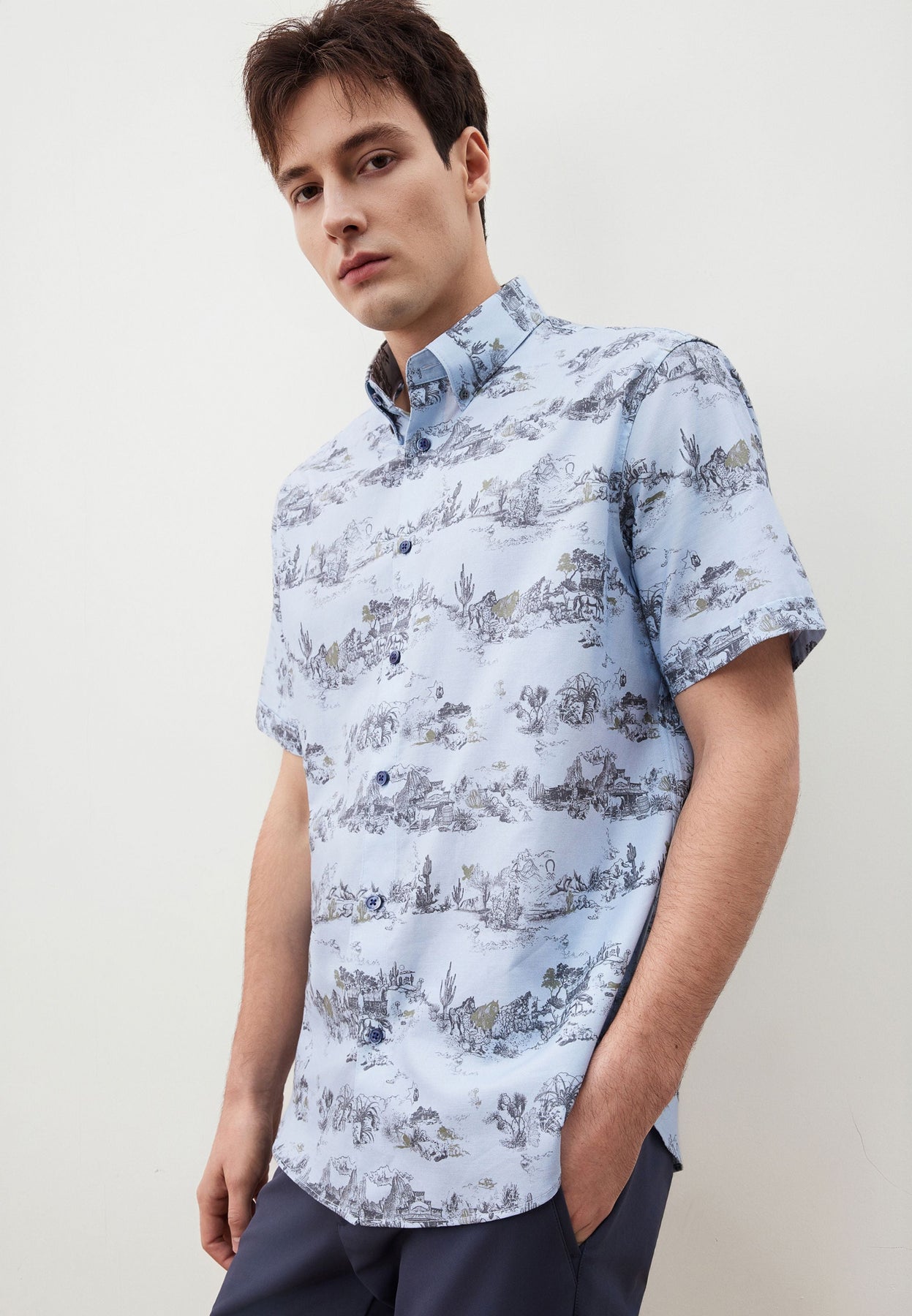 Men Clothing Short Sleeves Casual Shirt Model 5613091870, For men seeking casual short-sleeved shirts suitable for leisure or work, our collection offers a smart look. Whether paired with chinos, shorts, or for a slightly more formal look with slacks, you can wear them with confidence. Feel confident and enhance your work performance.