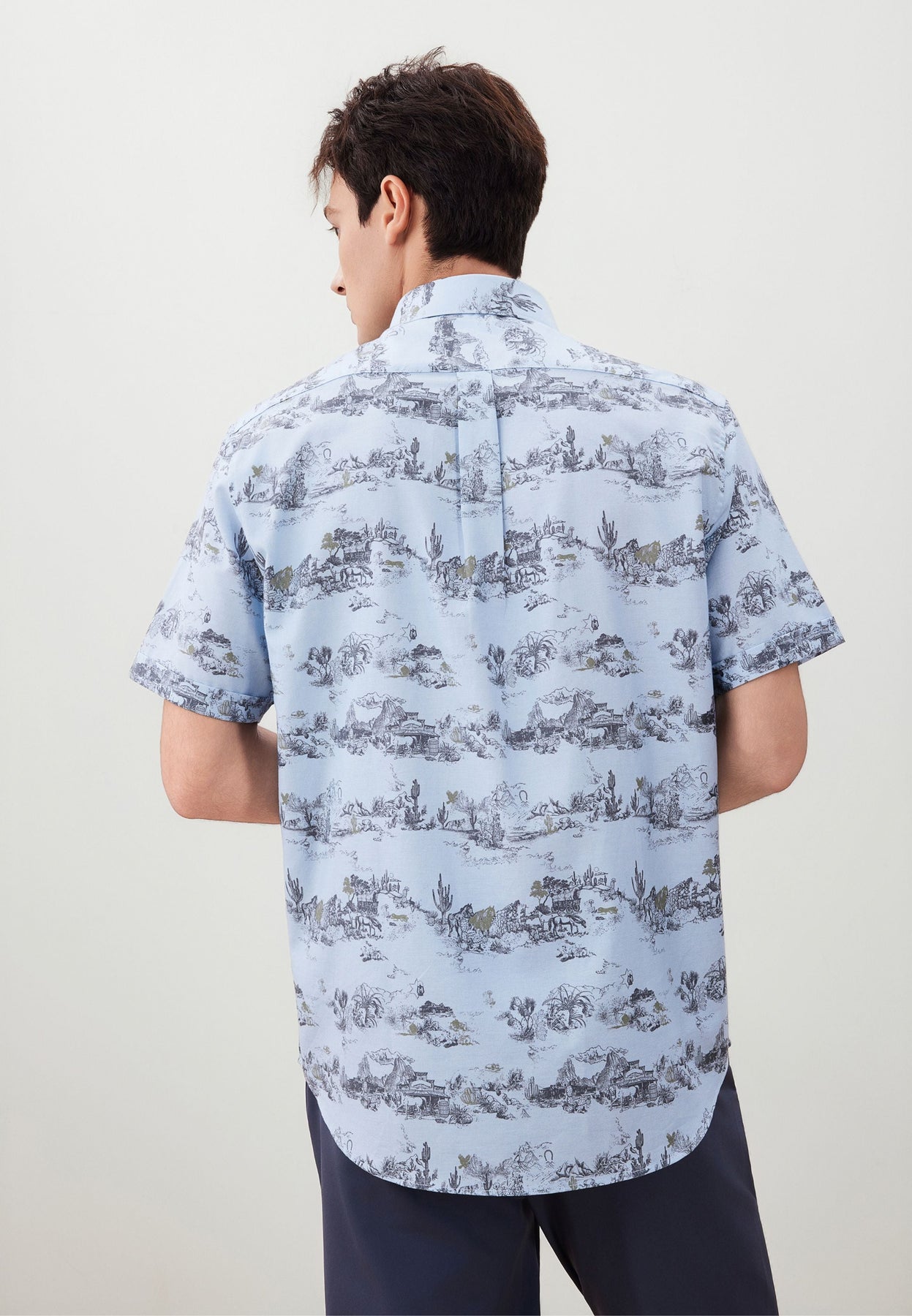 Men Clothing Wrinkle-Free Digital Print Oxford Casual Shirt Comfort Fit
