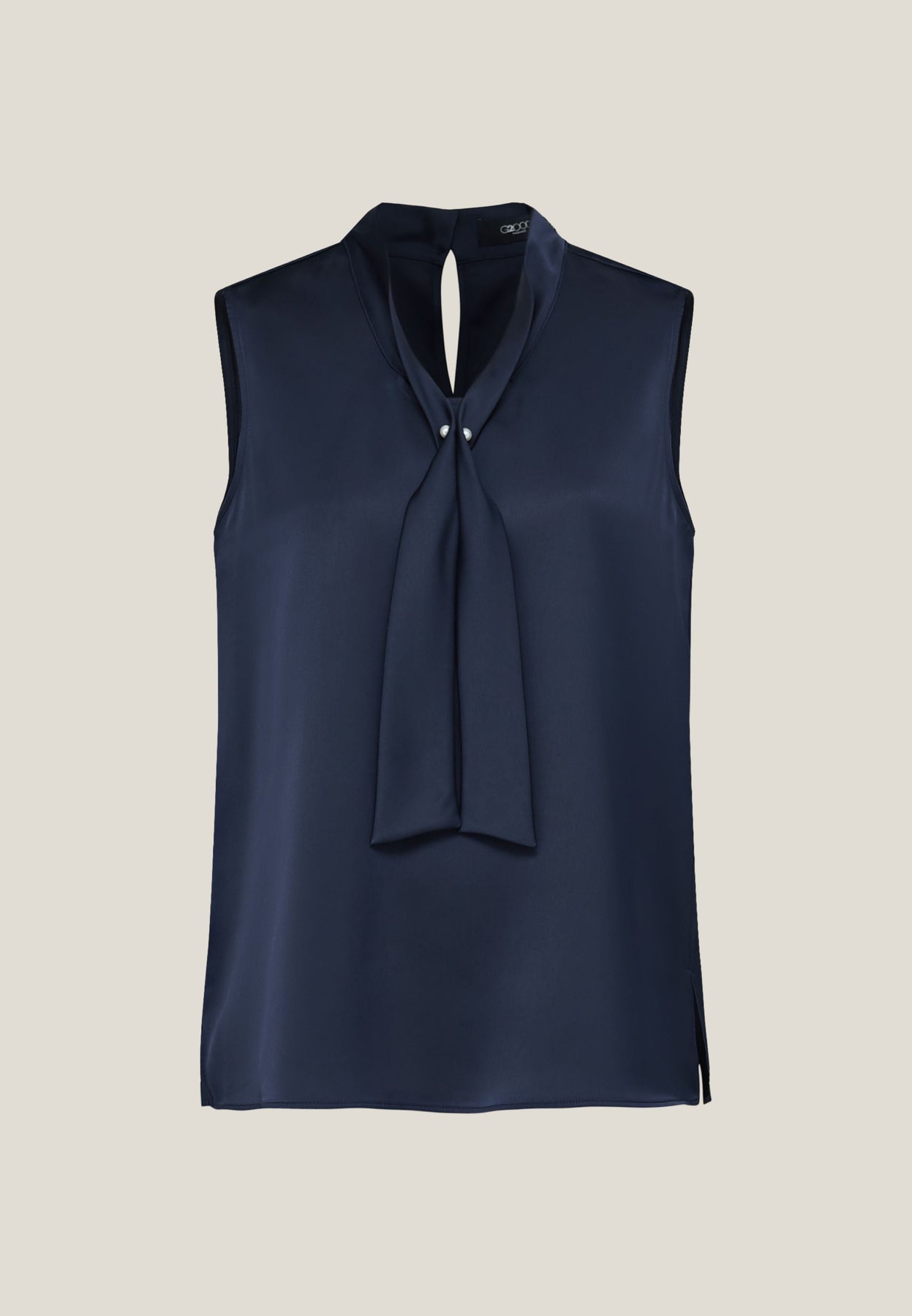 Women Clothing Sleeveless Satin Blouse with Pearl Tie-Neck Regular Fit